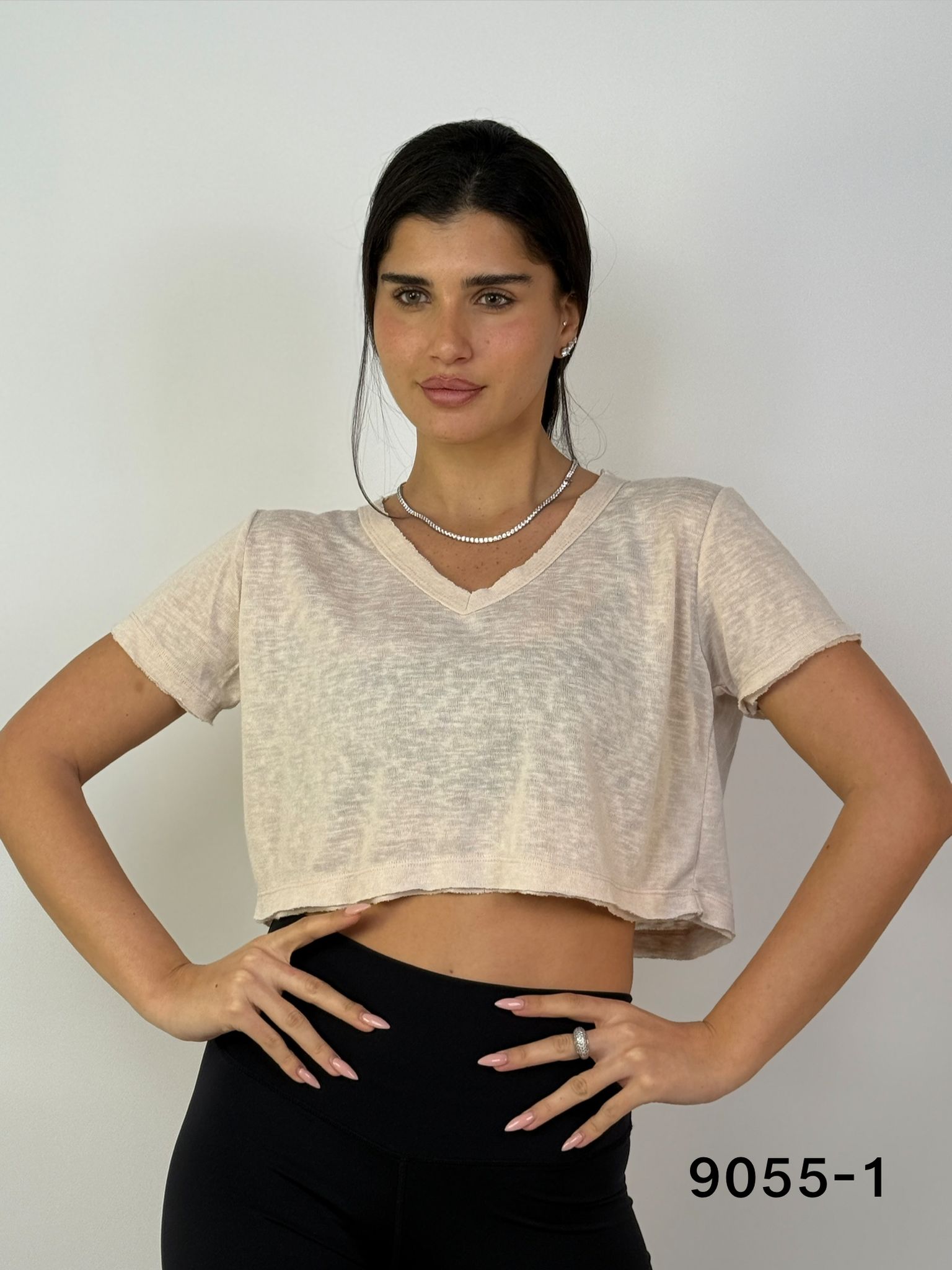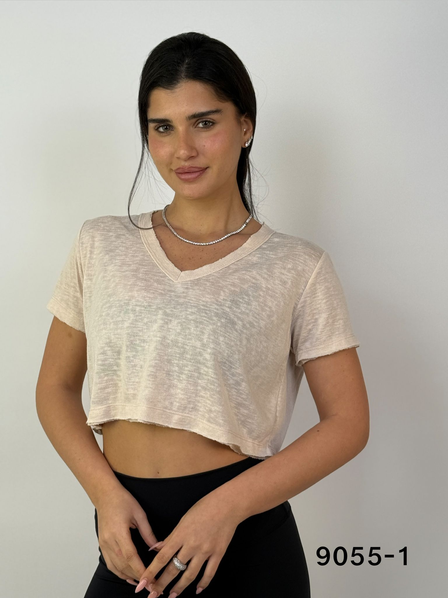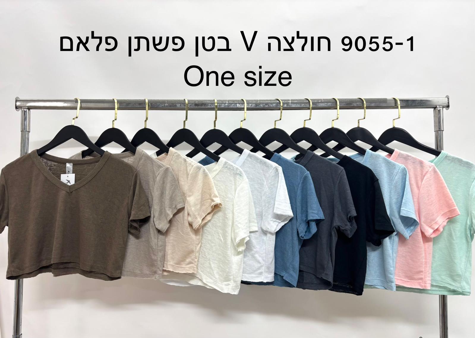 כמות של דגם 9055-1: חולצת פלאם וי בטן קרעים ש.קצר