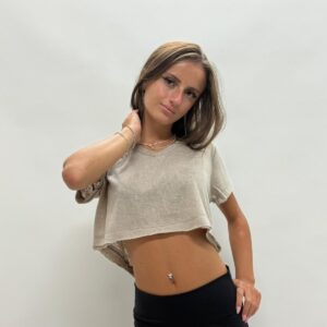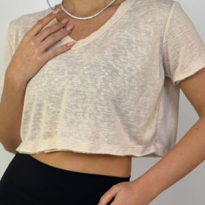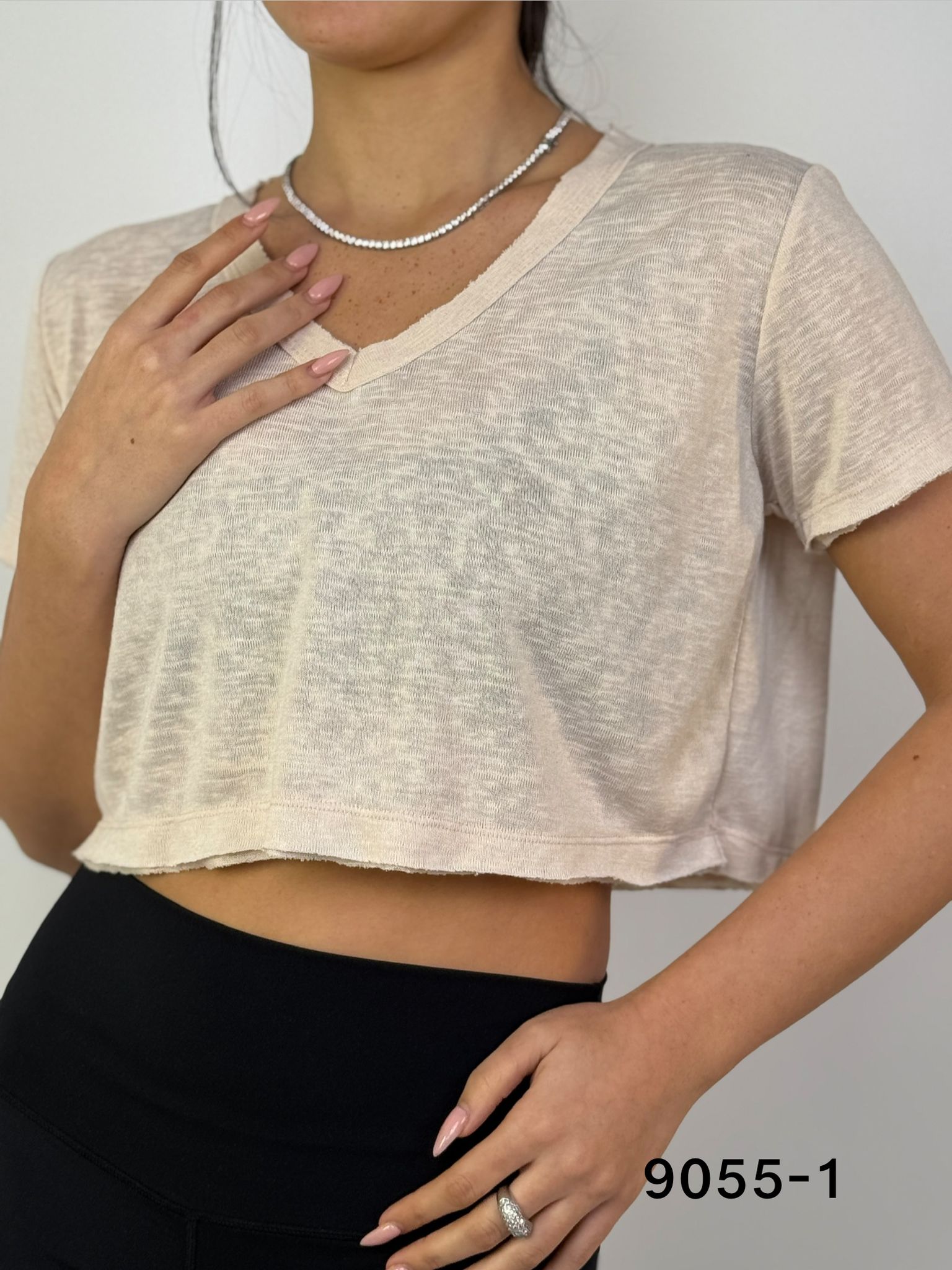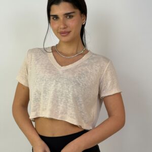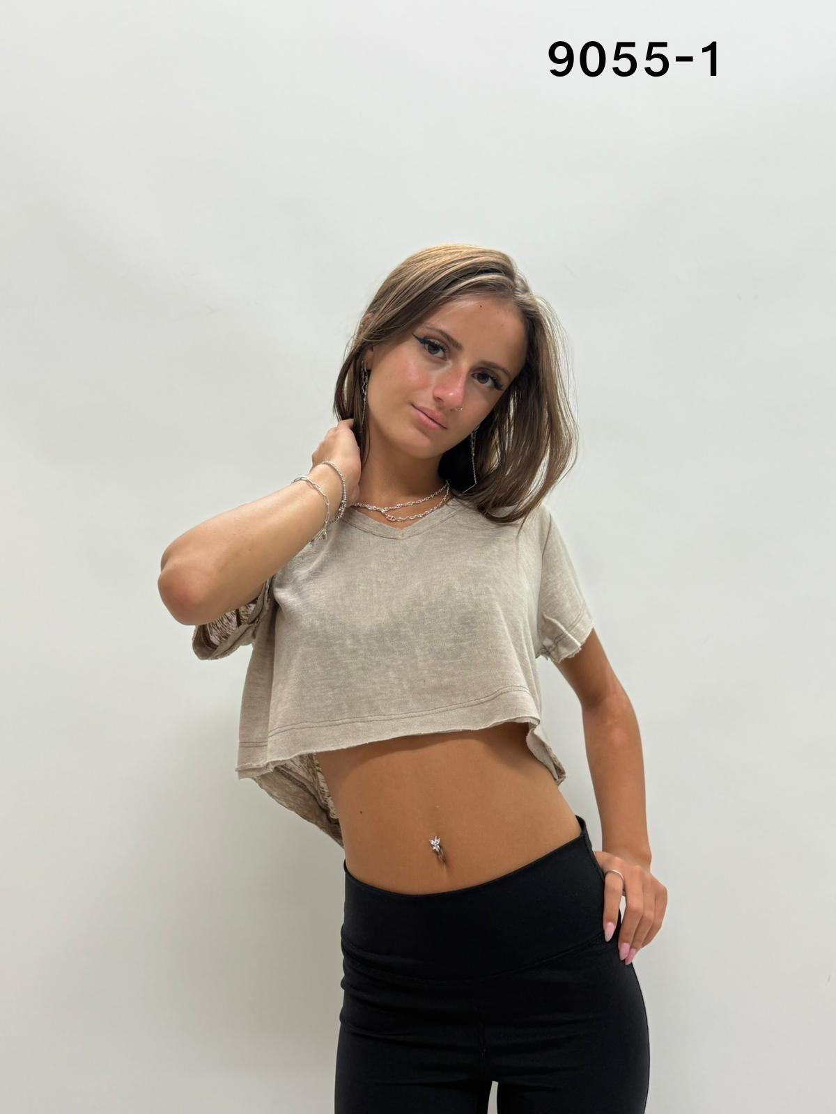 דגם 9055-1: חולצת פלאם וי בטן קרעים ש.קצר